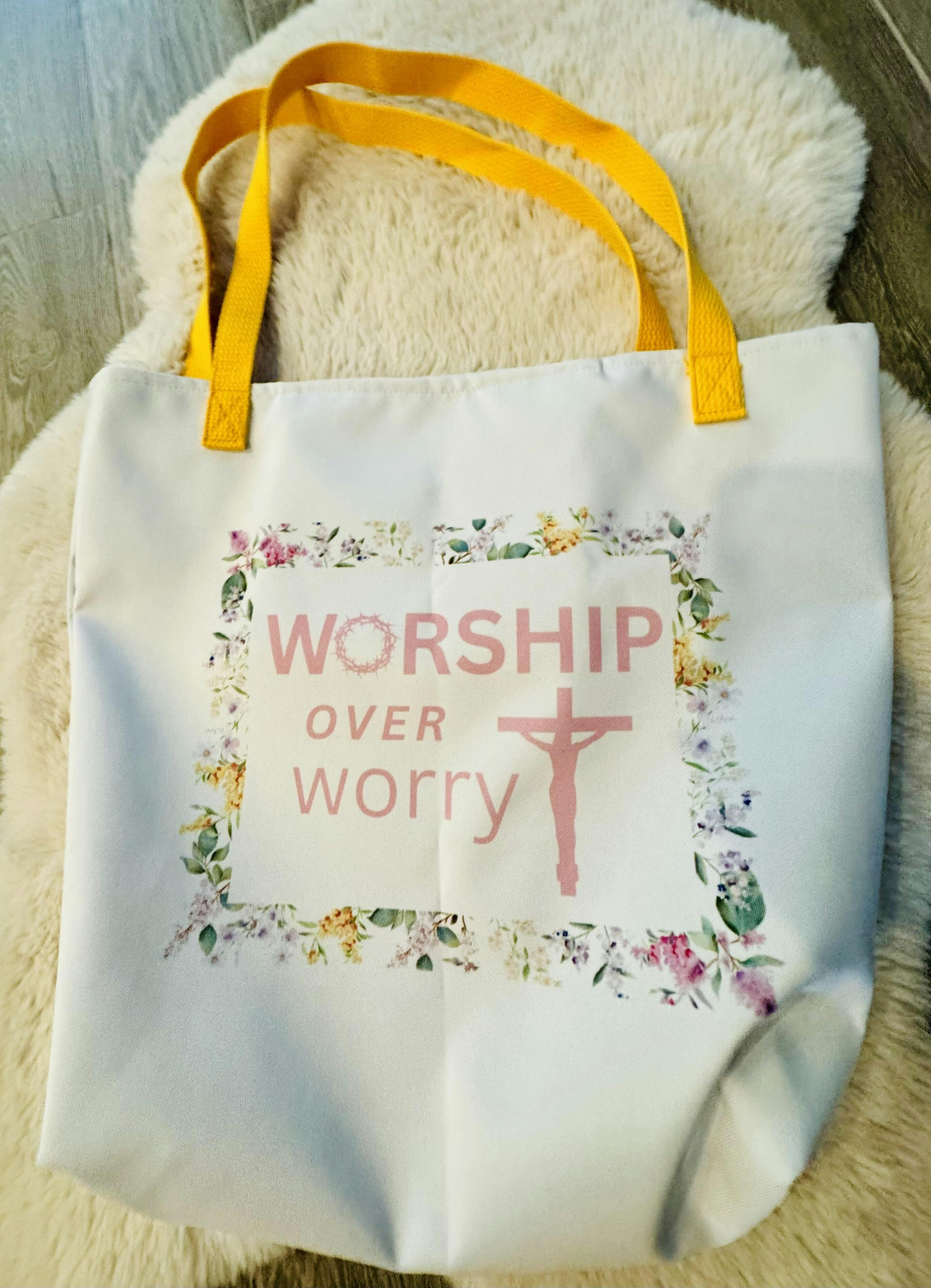 Worship Over Worry Large Tote Bag